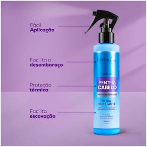 DescriçãoO Penteia Cabelo é um spray protetor térmico de uso diário que promove sedosidade, brilho e maciez aos fios, facilitando o desembaraço e a escovação dos fios.