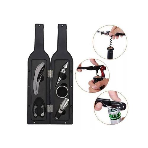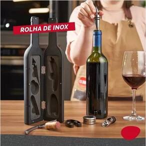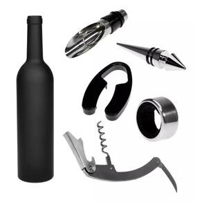 Kit vinho 6 peças abridor saca rolha tampa anel garrafa case