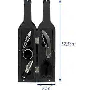 Seja para brindar uma ocasião especial, cativar seus clientes, mimar seus colaboradores ou fortalecer laços de amizade, este conjunto é a escolha perfeita. Sua embalagem em formato de garrafa não encanta apenas visualmente, mas também se destaca como um presente memorável. Imagine a expressão de admiração ao desvendar este elegante estojo emborrachado, pronto para oferecer uma experiência enogastronômica única.