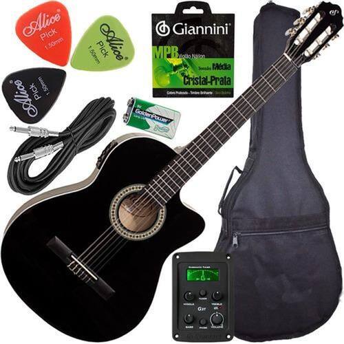 Kit violão giannini nf14 eletroacústico com capa cordas cabo