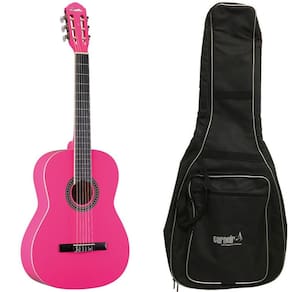 Braço: Linden Escala: Technical Wood 25.5" com 19 trastes e filete cor creme Tampo: Linden Lateral e Fundo: Linden Nut (Capo Traste): 50mm Cavalete: Chhlik Wood Bojo: 95mm x 100mm Tarraxas: 3+3 cromadas com botões estilo madrepérola Cordas: 6 cordas de Nylon Cor do Violão: Pink (Rosa) Acabamento: Verniz Brilhante Tensor: Sim, regulável Tipo: Acústico Classical Non-Cutaway Peso do Violão: 1,65 kg Dimensões do Violão: 105 x 45 x 12 cm (A x L x P) Material da Capa: Nylon 600gr Forração da Capa: Espuma polipack de 5mm Acabamento Interno da Capa: Non woven (TNT) Alças da Capa: Alça de mão e tipo mochila com ombreira emborrachada Bolso da Capa: Bolso externo 30 x 40 cm Zipper da Capa: 8mm País de Fabricação da Capa: Brasil Garantia do Violão: 3 meses pelo fabricante Marca: Não Informado Ean: 7898563971546