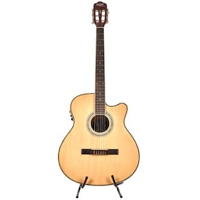 Violão land eletrico nylon natural lw-n-40e na O violão elétrico lw-n-40e se destaca pelo equilíbrio sonoro e ótima construção, sendo um instrumento indicado a quem busca versatilidade. Este violão clássico possui encordoamento em nylon, sendo uma excelente opção para músicos que valorizam tocabilidade. Seu braço é confortável, permitindo um bom encaixe da mão, detalhe importante para facilitar a execução das pestanas e acordes. Adquira o violão elétrico land lw-n-40e e tenha um instrumento musical que irá atendê-lo nas mais diversas ocasiões O land lw-n-40e foi desenvolvido num modelo anatômico e moderno, também oferece uma captação com maior qualidade. Outro diferencial que favorece todos os níveis de violonistas é o afinador digital embutido, que facilita muito, tanto de iniciantes quanto dos veteranos, da arte de tocar violão. O pré equalizador land eq-klt-17a é uma ótima opção para quem quer qualidade de som e versatilidade. O teq-8 é um pré equalizador ativo para violão. Acompanha 4 bandas de equalização bass/ middle/ treble , ajuste de volume, indicador de bateria altamente intuitivo e afinador. Especificações técnicas equalizador - pré amplificador, equalizador - afinador cromático digital - 3 bandas - grave, médio e agudo - phase, anula efeito de microfonia do violão - painel de lcd - battery box com jack p10 - bateria 9v inclusa. Marca - land Modelo - lw-n-40e Linha - water series Categoria - profissional Estilo - cowboy Tamanho - 40 polegadas Tampo - linden Fundo - linden Escala - richlite finberboard Braço - mahogany Acabamento - verniz brilhante Cor - natural Cordas - nylon Equalizador - eq-klt-17ª Controles - volume, médio, grave e agudo Cavalete - black wood Cutway - sim Trastes - 22 Marcaçao - bolinhas brancas Comprimento - 111,0 cm Largura - 52,0 cm Espessura - 19,0 cm Braço - 52,2mm Peso - 4,00 kg Encordeoamento Encordoamento para violão nylon land pa-c30 As cordas land da linha classic proporcionam o timbre e brilho que você procura para o seu violão. São perfeitas para músicos que preferem timbre macio e brilhante, com toque mais sensível. Acabamento com bolinha + revestimento cobre prateado As cordas land trazem a mesma qualidade presente em seus tradicionais instrumentos. Encordoamento violão nylon land classic com bolinha Alma: nylon Revestimento: cobre prateado Comprimento de escala: 648 mm / 25 1/2. Correia land As correias land para violão, guitarra e baixo, é um indispensável acessório para garantir o conforto dos Músicos e a segurança do instrumento em apresentações, principalmente em pé. Suporta até 10 quilos, e é super confortável, pois tem um acabamento impecável, Permitindo que seja Utilizado por muitas horas sem causar desconforto. Além disso, imprime estilo e bom gosto com visual único. Comprimento - 118 cm Largura - 50,0 cm Espessura - 12,0 cm Braço - 52,2mm Peso - 5,500 kg