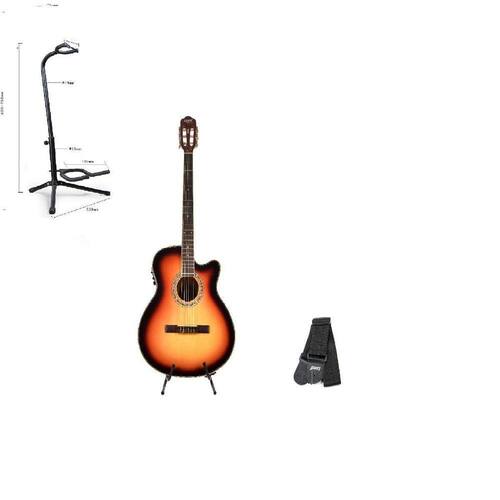 Violão land eletrico nylon sunburst lw-n-40e sb O violão elétrico lw n 40e se destaca pelo equilíbrio sonoro e ótima construção, sendo um instrumento indicado a quem busca versatilidade. Este violão clássico possui encordoamento em nylon, sendo uma excelente opção para músicos que valorizam tocabilidade. Seu braço é confortável, permitindo um bom encaixe da mão, detalhe importante para facilitar a execução das pestanas e acordes. Adquira o violão elétrico land lw n 40e e tenha um instrumento musical que irá atendê-lo nas mais diversas ocasiõesO land lw n 40e foi desenvolvido num modelo anatômico e moderno, também oferece uma captação com maior qualidade.Outro diferencial que favorece todos os níveis de violonistas é o afinador digital embutido, que facilita muito, tanto de iniciantes quanto dos veteranos, da arte de tocar violão.O pré equalizador land eq klt 17a é uma ótima opção para quem quer qualidade de som e versatilidade. O teq 8 é um pré equalizador ativo para violão. Acompanha 4 bandas de equalização bass/ middle/ treble , ajuste de volume, indicador de bateria altamente intuitivo e afinador.Especificações técnicas equalizador Pré amplificador, equalizador Afinador cromático digital 3 bandas grave, médio e agudo Phase, anula efeito de microfonia do violão Painel de lcd Battery box com jack p10 Bateria 9v inclusa.Marca landModelo lw-n-40eLinha water seriesCategoria profissionalEstilo cowboyTamanho 40 polegadasTampo lindenFundo lindenEscala richlite finberboardBraço mahoganyAcabamento verniz brilhanteCor sunburstCordas nylonEqualizador eq klt 17Controles volume, médio, grave e agudoCavalete black woodCutway simTrastes 22Marcaçao bolinhas brancasComprimento 111,0 cmLargura 52,0 cmEspessura 19,0 cmBraço 52,2mmPeso 4,00 kg.Suporte chao Suporte de chão land para instrumentos de corda pf-c20Ótimo custo-benefício combina uma borracha de acabamento aveludado. Apresenta trava de segurança no apoio superior e altura ajustável.Perfeito para qualquer tipo de guitarra, baixo ou violão, viola. Aplicação: suporte para guitarra, violão, baixo Revestimento: borracha aveludada Material dos pés: metal extra-rígido Cor: preto.Correia landAs correias land para violão, guitarra e baixo, é um indispensável acessório para garantir o conforto dos Músicos e a segurança do instrumento em apresentações, principalmente em pé.Suporta até 10 quilos, e é super confortável, pois tem um acabamento impecável, Permitindo que seja usada por muitas horas sem causar desconforto.Além disso, imprime estilo e bom gosto com visual único.Comprimento 118 cmLargura 50,0 cmEspessura 12,0 cmBraço 52,2mmPeso 5,500 kg