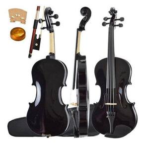 Kit violino barato canhoto preto 4/4 estojo arco breu
