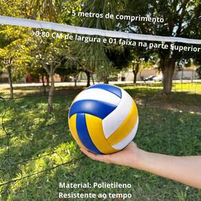 Procurando uma Bola de Vôlei Apresentamos nosso Kit Vôlei completo. Contando com uma Bola de Vôlei excelente para saques e passes perfeitos. A diversão fica completa contando com uma Rede de 5 metros de comprimento para jogos em Quadras, Piscinas, Praias e Campos. Chame seus amigos e escalem seus times que o campeonato vai começar Atenção: As cores da Rede e Bola são variadas e dependem dos modelos disponíveis em , na hora do envio do produto. Especificações e Ficha Técnica Rede: 5 metros x 80 cm de largura e 01 faixa na parte Superior, costurada no Fio 1,5 mm, Malha 16x16 polegadas. Material: Polietileno Resistente a condições externas. Itens Inclusos 01 Bola de Vôlei 01 Rede para recreação 5 metros de comprimento 01 Sacola / Mochila Temos também opçôes de Rede maior ou menor. Rede de 9 metros de comprimento; Rede de 3,5 metros de comprimento. do vendedor: 7 dias Marca: Não Informado Ean: 79003410524173