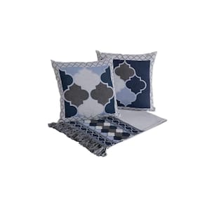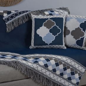 Kit Xale Para Sofá Com Franja Grécia 5 Peças 1,35m x 1,35m 60% Algodão / 40% Poliéster Tecido Jacquard Acompanha Almofadas Cheias.
