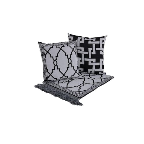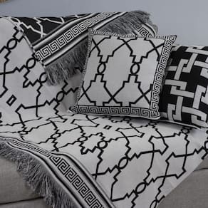 Kit Xale Para Sofá Com Franja Grécia 5 Peças 1,35m X 1,35m 60% Algodão 40% Poliéster Tecido Jacquard - Preto