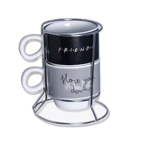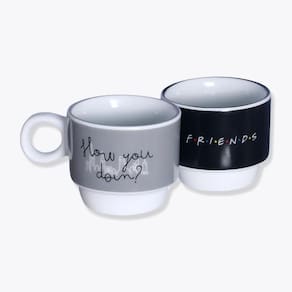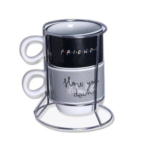 Kit Xícaras Com 2 Peças Friends Kit Xicaras Friends quer tomar aquele cafezinho, mas não tem nenhuma caneca a vista A gente te ajuda Com essa dupla, seu lanche da tarde está a salvo, com 150ml de capacidade, tem a medida que você precisa para derrotar a vontade de tomar aquele café quentinho O produto é produzido em território nacional, feita em porcelana, com detalhes incríveis que vão fazer você se apaixonar São 2 canecas de 150ml de capacidade para tornar a hora do café mais divertida e completa, é perfeita para os apaixonados por café Não importa se é no home office ou no cafezinho da tarde para colocar o papo em dia, essas canecas te acompanham em todas as suas aventuras Especificações: Canecas: Altura: 9 cm Comprimento: 8 cm Largura: 9,5 cm Capacidade: 150ml Material: Porcelana. Torre: Altura: 18cm Comprimento: 10cm Largura: 10cm Material: Metal Cuidados e recomendações de uso: Lavar com água, esponja macia e detergente neutro. Não vai ao micro-ondas, nem a lava-louças. Não utilizar químicos e abrasivos. Choques ou quedas podem trincar ou quebrar o produto, pois trata-se de um produto de Porcelana.