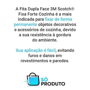 DESCRIÇÃO Nosso Kit2 Fita Dupla Face Scotch Fixa Forte Cozinha 24X1,5 3m 1kg é perfeito para fixar todos aqueles objetos decorativos. A fita pode ser usada em utensílios, acessórios de cozinha e nas paredes. Sua resistência à graxa ambiental a torna ideal para uso em cozinhas, onde quer que haja exposição à graxa. A película impermeável garante que nenhum líquido penetre na fita e a torna impermeável, mesmo em áreas expostas à graxa.