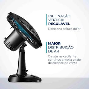 Tipo de ventilador Ventilador de mesa Peso 1,60 Inclinação regulável Sim Oscilante Sim Garantia 1 ano