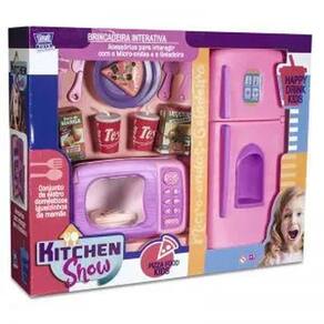 Kitchen show pizza food kids 7811 Mações do produto Com o kitchen show você vai poder inventar muitas receitas para brincar com toda a sua turma, crie um delicioso cardápio para toda a família. Uma brincadeira deliciosa e divertida, pensada para quem tem muita criatividade na hora de preparar pratos dignos de um chef. Especificações: Todas as peças são lúdicas, indicadas para o desenvolvimento pedagógico, imaginação e criatividade. Recomendado para crianças a partir de 3 anos Material: polipropileno polietileno, papel microondulado. Descrição Geladeira 36 cm x 15 cm as portas abrem Micro ondas 20 cm comp. X 10 larg. X 12 alt. Copo refrigerante 5,5 cm x 4 cm COD INMETRO CE-BRI/INNAC- 00297-01A 2 garfos, 2 facas, 2 pratos, 2 mini pizzas, 01 forma de gelo, 1 caixa de suco 1 caixa de azeite. Medidas da caixa 38 x 11 x 47 cm 01 kg. Ean: 7898521377045