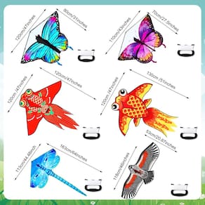 Características: As pipas infantis fáceis de voar são adequadas para brincar na praia, parque, campo, gramado e outras áreas abertas, o que pode fazer você relaxar e se exercitar, trazendo um clima encantador. O papagaio de praia infantil pode ser considerado um bom presente para filho, filha, estudante, colega de classe, vizinho e assim por diante, eles ficarão felizes em receber um presente tão delicado. Especificações: Material da pipa: poliéster à prova de rasgos Cor: como mostrado nas imagens Tamanho: como mostrado nas imagens A embalagem inclui: Pacote com 6 pipas para crianças Observações: Medição manual, considere pequenos erros no tamanho. A cor pode existir uma ligeira diferença devido a diferentes ecrãs. - Conjunto interessante de pipas: você receberá 6 conjuntos de pipas infantis, com chamas dobradas combinadas e pipa de cordas de 100 metros; as pipas apresentam padrões elegantes variados, como borboleta, libélula, peixe dourado e águia; quantidade suficiente e designs podem atender às suas várias demandas de jogo, e você pode compartilhá-los com amigos e familiares - Material resistente: as pipas voadoras para crianças adotam poliéster à prova de rasgos de qualidade com impressão por sublimação térmica, forte e não desbota, traz para o sol, colorido e atraente, traz uma boa experiência de uso - Fácil de montar e armazenar: o papagaio para crianças é fácil de montar, nem leva 2 minutos para montar, basta seguir as instruções; O design do esqueleto dobrável encurta o comprimento do pacote; cabe facilmente em uma mala ou até mesmo em uma mochila, conveniente e portátil - Faça você relaxar: você pode jogar papagaio voador em uma praia, parque, campo, gramado e muito mais, sem necessidade de habilidade só precisa correr em áreas abertas, não apenas aliviar seu desconforto, fazer você feliz, mas também alcançar o propósito do exercício - Presentes delicados: adotando vários elementos de animais adoráveis, estas pipas para crianças fáceis de voar podem ser consideradas como bons presentes para colega de classe, membro da família, estudante e muito mais, adequado para servir como presente de aniversário, dia das crianças, formaturas e assim por diante