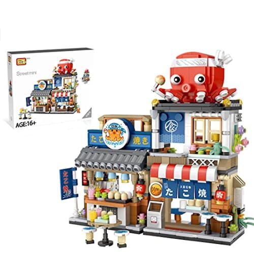 KKXX Série Japonesa Street View Takoyaki Loja Tijolos Conjunto de Construção, 722 Peças Casa Modular Brinquedos Presentes para Crianças Adultas, Blocos de Construção de Partículas Kit de Brinquedo Tronco Compatível com Arquitetura Lego