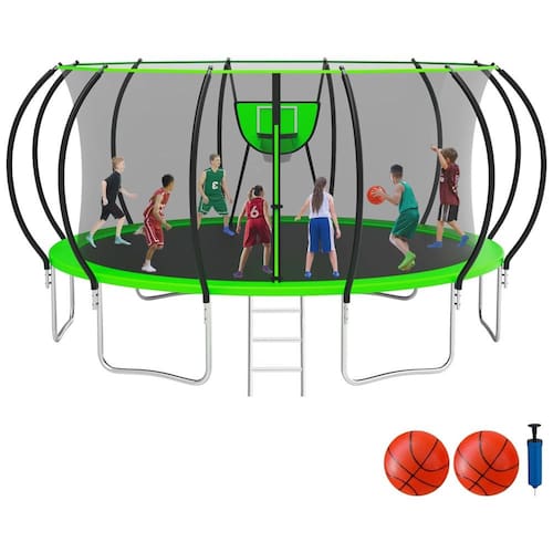 Após mais de 2000 testes de segurança e durabilidade, o Kofun 4,86 ??metrôs trampolim pode conter 680,27 quilos 910 crianças