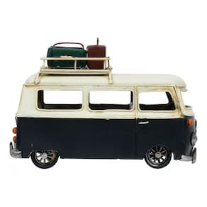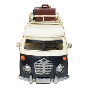 Enfeite decorativo em forma de um kombi preto com 13 x 19,5 x 9,3 cm de dimensão, detalhes e cores muito realista. Topo da kombi com um porta retrato pra uma foto 4,5 x 5,5 cm. Material: metal; Atenção: este produto tem apenas função decorativa, não é um brinquedo e nem um kombi de verdade!Código: AT1904E-7903A-MPeso: 0,40 KgAltura: 13cmLargura: 9,30cmComprimento: 19,50cm