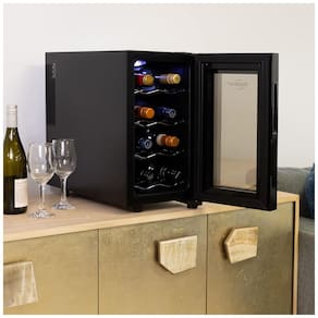 Desfrute de um luxuoso e acessível espaço de armazenamento de vinhos. A menos que você viva em um castelo nas colinas do sul da França, é provável que não tenha uma adega naturalmente refrigerada esculpida nas fundações do seu porão. Mas não se preocupe, pois a Adegas de Vinho Koolatron para 8 garrafas armazena seus vinhos favoritos na temperatura ideal, cabendo em qualquer espaço da sua casa sem a necessidade de um castelo medieval. Além disso, a elegante porta de vidro refletivo protege seus vinhos dos raios UV prejudiciais, enquanto a iluminação interna suave exibe sutilmente suas garrafas preferidas. Por que ter uma adega de vinhos dedicada? Especialistas recomendam armazenar vinhos em temperaturas mais altas do que um refrigerador comum. Esta adega de tamanho compacto comporta até 8 garrafas de vinho com prateleiras removíveis que permitem personalizar o interior para acomodar garrafas maiores ou de formatos irregulares. A tecnologia termoelétrica avançada refrigera de forma eficiente, sem ruídos ou vibrações, mantendo seus vinhos em uma temperatura constante e pronta para servir, sem perturbar os sedimentos. Agora você terá mais espaço na geladeira para queijos e canapés! Dicas para aproveitar ao máximo sua adega de vinhos: certifique-se de que está longe de eletrodomésticos que geram calor e da luz solar direta. Deixe dois centímetros de espaço entre a lateral da adega e a parede, e quatro centímetros entre a parte traseira da adega e a parede para permitir a circulação de ar. Para um sabor ideal, os especialistas recomendam manter o vinho tinto a 13-18°C, o vinho branco a 9-12°C e o vinho espumante a 7-8°C. Luxo acessível: esta elegante adega de vinho autônoma comporta até 8 garrafas padrão e se encaixa perfeitamente em uma mesa ou balcão para que você desfrute ao máximo de seus vinhos favoritos. Controles de Tela Sensível ao Toque: Os controles externos e o visor digital permitem que você veja e ajuste a temperatura ou ligue e desligue a luz interna sem abrir a porta, mantendo o ar frio dentro. Conveniência Autônoma: Você pode posicionar esta compacta adega de vinho em qualquer lugar com uma fonte de energia, para que seus vinhos favoritos estejam sempre à mão. Porta de Vidro Protetora contra raios UV: A porta de vidro duplo espelhado protege seus vinhos dos danos causados pelos raios UV, enquanto a iluminação suave destaca sutilmente sua coleção de vinhos. Refrigeração Silenciosa e Confiável: A tecnologia termoelétrica avançada refrigera eficientemente a 8-18°C sem vibrações ou CFCs, garantindo que seus vinhos sejam mantidos em uma temperatura ideal.
