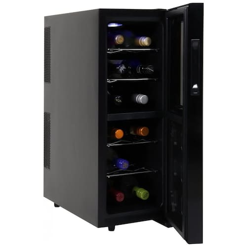 REFRIGERAÇÃO CONFIÁVEL E EFICIENTE - O refrigerador de vinhos Koolatron tem capacidade de 33 litros com faixa de resfriamento da zona superior de 12-18°C e da zona inferior de 8-18°C. O sistema opera sem vibração, preservando os sedimentos no vinho. Feito com qualidade confiável e design inteligente na América do Norte. PORTA DE VIDRO COM PROTEÇÃO UV - Protege seu vinho dos raios UV prejudiciais, enquanto a iluminação interna destaca suavemente sua coleção. O design elegante da porta de vidro, além de preservar a qualidade do vinho, adiciona sofisticação ao ambiente. CONTROLE DE TEMPERATURA - Capaz de manter diferentes temperaturas para vinhos tinto e branco, garantindo que cada tipo seja armazenado em sua temperatura ideal. Ideal para entusiastas de vinho que desejam preservar o sabor de suas bebidas. DESIGN PORTÁTIL E VERSÁTIL - Oferece uma solução flexível e portátil para armazenar seus vinhos e bebidas. Seu design compacto permite colocá-lo em qualquer ambiente com acesso a uma fonte de energia, como cozinha, sala de estar ou bar. ZONA DUPLA DE RESFRIAMENTO - Apresenta zonas superior e inferior controladas separadamente, cada uma com capacidade para 6 garrafas. Mantém seus vinhos favoritos em condições perfeitas. CONTROLES SIMPLES - Facilita a seleção da temperatura ideal e o acionamento da luz interna. Painel de controle intuitivo para operação sem complicações. TAMANHO COMPACTO - Ideal para espaços pequenos como balcões, mesas pequenas ou cantos de cozinha apertados. Elegante e funcional, se encaixa perfeitamente em diversos ambientes. APARÊNCIA ESTÉTICA - Design moderno que valoriza a decoração de qualquer espaço. Operação silenciosa, adequada para ambientes tranquilos.