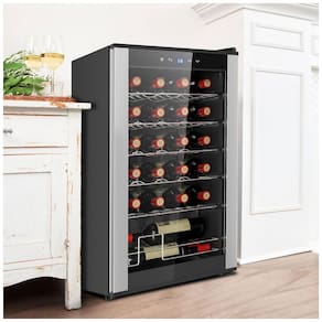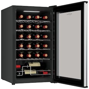 Armazene e exiba com elegância 24 garrafas de vinho com a Geladeira de Vinhos Koolatron, que possui prateleiras removíveis de aço inoxidável que acomodam garrafas maiores e formatos não convencionais. Com um suporte de exibição horizontal, é fácil identificar e acessar seus vinhos favoritos. Com opções flexíveis de armazenamento, prateleiras deslizantes e racks ajustáveis, você pode guardar uma variedade de vinhos com facilidade. O design compacto e elegante se encaixa perfeitamente em qualquer ambiente, proporcionando refrigeração eficaz e silenciosa para manter seus vinhos na temperatura ideal. Possui zona de resfriamento única, controles digitais de toque, porta de vidro UV protetora, compressor de alta performance, sistema de auto-descongelamento.