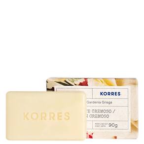 Sabonete em barra cremoso. Korres Gardênia Grega deixa a pele higienizada e macia com hidratação e aroma suave.