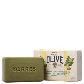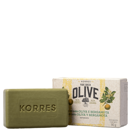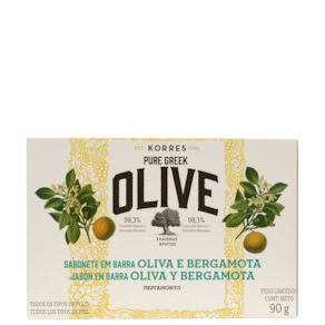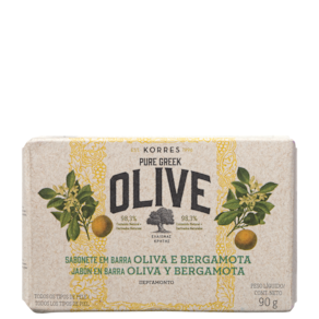 Sabonete em barra cremoso. Korres Óleo de Oliva e Bergamota promove uma limpeza suave que deixa a pele sedosa e com fragrância fresca.