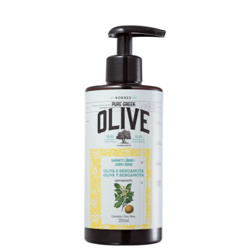 Sabonete líquido para mãos. Korres Óleo de Oliva e Bergamota limpa, nutre, hidrata e perfuma a pele com extratos naturais.