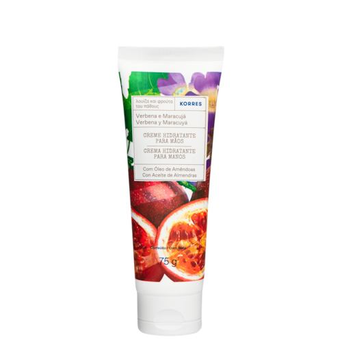 Korres Verbena e Maracujá contém Óleo de Amêndoas, rico em ácidos graxos que nutrem a pele e evitam o ressecamento, garantindo um toque macio e suave tanto para a pele das mãos quanto para as cutículas.
