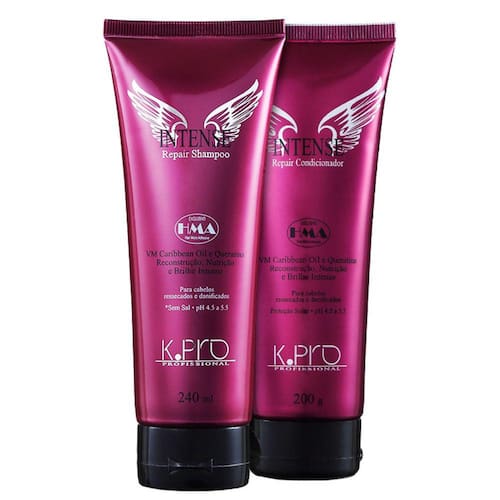Kit de tratamento para cabelos ressecados e danificados. O K.Pro Intense Repair Duo Kit limpa, desembaraça e condiciona os fios devolvendo flexibilidade, elasticidade e hidratação de longa duração. Promove a ação intensiva nos cabelos enfraquecidos por processos químicos, agressões externas ou envelhecimento natural, restaurando a saúde das fibras capilares. Seu cabelo hidratado, saudável, com maciez e brilho. Contém:K.Pro Intense Repair Shampoo - Shampoo 240ml: Shampoo para cabelos ressecados e danificados. Limpa os fios delicadamente, removendo todas as impurezas para uma limpeza total. K.Pro Intense Repair Condicionador - Condicionador 200g: Condicionador para cabelos ressecados e danificados. Desembaraça os fios promovendo condicionamento, hidratação e tratamento intensivo. Repara gradativamente a estrutura das fibras capilares.