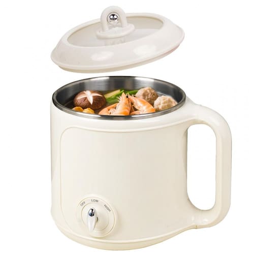 Panela elétrica multifuncional em aço inoxidável com controle duplo de temperatura. Capacidade de 2,0 litros. Ideal para refeições práticas e saborosas, para dormitório, escritório ou viagens. Fabricada em aço inoxidável durável. Duas opções ajustáveis de temperatura. Tampa de vidro transparente. Alça confortável. Compacta, funcional e portátil.Lâmpada piloto