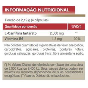 Tartarato de L-carnitina, cloridrato de piridoxina (vitamina B6) e antiumectante dióxido de silício.