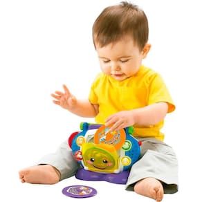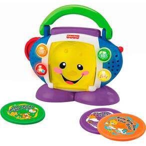 O CD Player é um novo íten da linha. Com botões que acendem, músicas, cantigas com rimas e CDs, o bebê vai amar esse CD Player portátil. A alça dobra, facilitando na hora de colocar os CDs dentro do local adequado. É um brinquedo muito educativo que ensina o alfabeto, números, cores e formas. Ele vem com 3 discos e toca 7 músicas no total: Alfabeto/ Cores/ Um, dois feijão com arroz/ O Barquinho/ Brilha, Brilha, Estrelinha/ Formas/ A Dona Aranha. Não toca CDs de verdade.