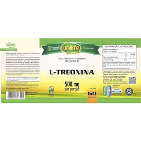 L-treonina unilife 500mg 60 cápsulas Modo de uso: Sugere-se a ingestão de 2 cápsulas ao dia após a refeição. Ingerir com líquido. Ingredientes: L-treonina, agente de massa celulose e antiumectantes dióxido de silício e estearato de magnésio. Cápsula: gelatina vegetal e água purificada. Peso total de cada cápsula: 500mg. Não contém glúten. Livre de lactose. Produto vegano. Produto autorizado para comercialização em todo o território nacional através do anexo i da rdc 240/2018 da anvisa. Afe do ms 6.02234-1. Marca: Não Informado Ean: 7898483536405