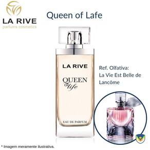 O Perfume Queen of Life La Rive mostra as diferentes facetas da beleza com a elegância da Íris, a alegria da Pêra e da Groselha e a calmaria do Jasmim com a Amêndoa. Revela o melhor das mulheres de bem com a vida, que aproveitam a feminilidade e a liberdade no seu estilo próprio de viver.
