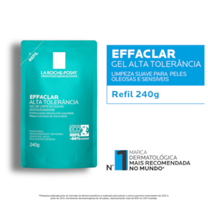Gel de limpeza para peles mistas e oleosas. La Roche-Posay Effaclar Alta Tolerância controla a produção de sebo excessiva e limpa com suavidade.