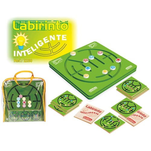 DESCRIÇÃO Um brinquedo educativo muito útil para o desenvolvimento intelectual infantil e também de adultos e idosos. O Labirinto Inteligente é um brinquedo de estratégia que trabalha a coordenação motora, através da combinação das ilustrações, cores e formas. A criança deverá reproduzir no tabuleiro a imagem ilustrada em uma das 20 placas que acompanham o brinquedo, movimentando as peças livremente através do caminho vazado. Estimula a coordenação motora, atenção, paciência e concentração.