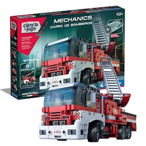 Um grande caminhão de bombeiros motorizado e mais 5 modelos para construir, experimentar e aprender os conceitos mais importantes da mecânica e da engenharia. Um desafio sempre diferente para te divertires a pensar e a imaginar possíveis soluções e montagens, um grande laboratório de construção para estimular a criatividade e a imaginação, bem como a destreza manual, com tudo o que é preciso para deixar a criança livre para testar as suas ideias e verificar as soluções de uma forma concreta.