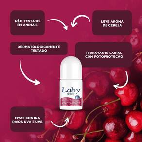 Laby prot sol hidrat labial cereja fps15 3,2g O hidratante labial laby cereja proporciona hidratação e proteção para lábios danificados. Possui fps15 que protege 15 vezes mais, contra os efeitos nocivos da exposição prolongada ao sol, do que se não tivesse sido aplicado. Foi elaborado com substâncias que hidratam e amaciam os lábios, evitando o ressecamento e o envelhecimento precoce da pele. Coloração neutra e leve aroma de cereja. lembradaboca Ean: 7896186000872