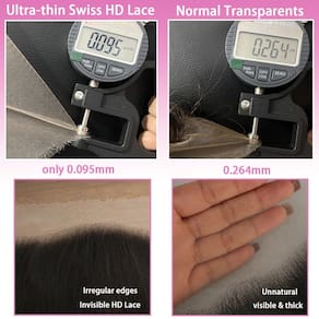 - ?Fecho de renda HD real semelhante à pele de 0,095 mm?Feito de renda suíça 100% real, oferecendo a linha do cabelo mais natural.