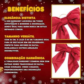 A cor vibrante e o brilho do Laço Burgundy Vermelho capturam a atenção e adicionam um toque de alegria à decoração natalina.
