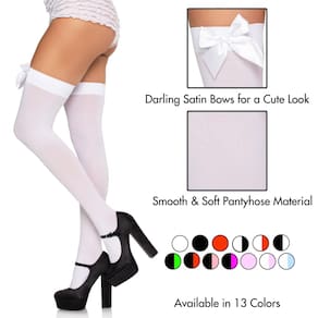 Meias 7/8 Leg Avenue femininas, opacas, com laços de cetim- Meias 7/8 opacas com elástico e laços na aberturas.