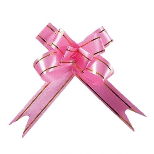 Laços de fita de plástico. Disponível em diversas cores, com filetes dourado nas laterais. Ideal para amarrar e decorar sacolas ou caixas para presentes. Embaladas em pacote de plástico polipropileno extra brilho.