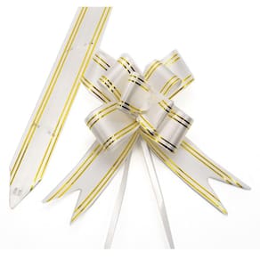 Kit contendo 60 unidades do Laço Fácil para presentes em forma de gravata, medindo 1,4 x 24 cm cada peça. O Kit é composto por 20 unidades do Laço branco, 20 unidades do Laço dourado e 20 unidades do Laço vermelho.
