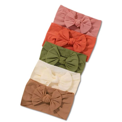 Laços de Bebê Turbante Faixinha Meia de Seda Acessórios Infantis Kit 5 Unidades - Bege