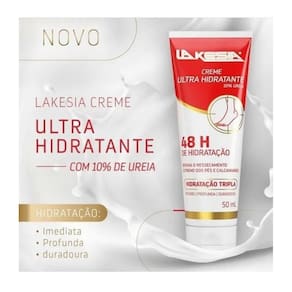 Lakesia Creme Ultra Hidratante 10% Ureia 50Ml La kesia creme ultra hidratante 10% ureia proporciona 48 horas de hidratação e repara o ressecamento extremo dos pés e calcanhares. Para que serve La kesia creme ultra hidratante é um produto que hidrata rapidamente a pele e alivia o ressecamento mais extremo, melhora a textura e ajuda a recuperar a elasticidade da pele. Atua nos principais aspectos da pele ressecada: aspereza; repuxamento; descamação; esbranquiçamento. Modo de usar Aplique lakesia creme sobre a pele limpa e seca 2 vezes ao dia, massageando suavemente com movimentos circulares, até que o creme seja totalmente absorvido.