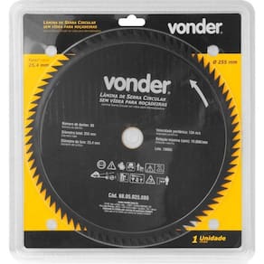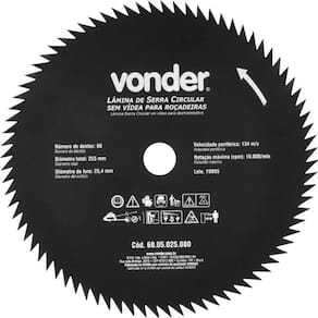 Lâmina circular sem vídea, para roçadeiras, 255 mm x 25,4 mm, 80 dentes, VONDER