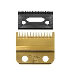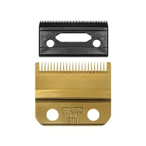 Lâmina Wahl Magic Clip Gold com alto teor de carbono e de fabricação americana com revestimentos de titânio e dlc que são ultra-resistentes, resistentes à ferrugem e mantêm sua temperatura.