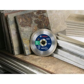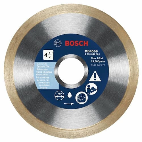 BOSCH DB4569 Lâmina de diamante de aro contínuo premium de 10 cm com mandril de 7/20.3 cm para aplicações de corte úmido de corte limpo em azulejo de vidro, azulejo de cerâmica - Melhor desempenho em azulejos de vidro - Formulação de ligação suave para um corte mais limpo - Design de aro contínuo - Ideal para uso em materiais muito delicados