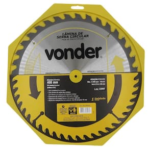 DESCRIÇÃO:Indicada para cortar madeiras. Nunca exceder a rotação máxima rpm - risco de acidente e/ou queima da lâmina. Não cortar madeiras impregnadas com massa ou cimento. Para cortes em MDF, a vida útil da serra e o nível de qualidade do acabamento serão reduzidos. A Vonder disponibiliza em seu mix, serras apropriadas para cortes em MDF. CARACTERÍSTICAS:- Corpo em aço carbono- Dentes de metal duro/vídea que proporcionam maior vida útil. DETALHES TÉCNICOS:- Diâmetro externo: 400 mm- Nº de dentes: 36- Diâmetro do furo: 30 mm- Diâmetro da bucha de redução: De 30 mm para 16 mm- Material do corpo: Aço carbono- Rotação máxima rpm : 3.300/min- Espessura de corte: 4,5 mm- Espessura do corpo: 3,0 mm- Garantia legal: 90 dias. CONTEÚDO DA EMBALAGEM:- 1 Lâmina de serra circular;- 1 bucha de redução.