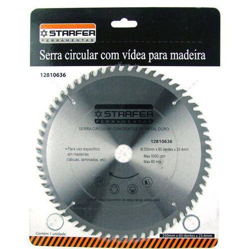 Descrição Serra circular de widea Starfer tem seus dentes de metal duro e resistente. Para uso especifico em madeiras tabuas, laminados, etc. Acompanha 4 anéis de redução: 1 25,4mm para 7/8 22mm 1 25,4mm para 3/4 19mm 1 25,4mm para 5/8 16mm 1 25,4mm para 1/2 12,5mm