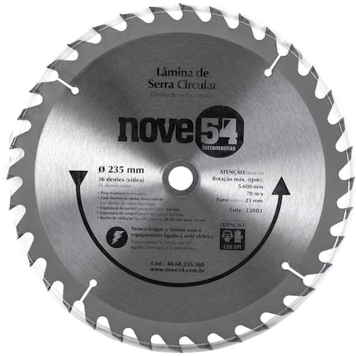 Lâmina de serra circular vídea 235mm 36 dentes Nove54