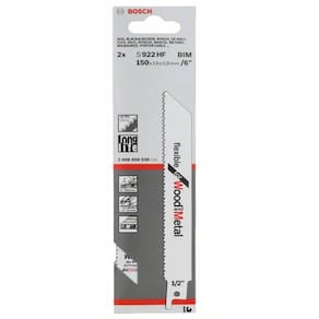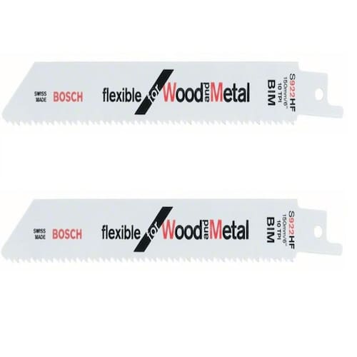 A lâmina S 922 HF da Bosch para serra sabre é ideal para realizar cortes em pregos macios, materiais de aço suave e componentes metálicos não ferrosos embutidos na madeira. Ela é perfeita para tarefas como reparar pallets, cortar madeira com pregos ou metal (até 100 mm), bem como para lidar com chapas de metal, tubos e perfis de alumínio (espessura de 3 a 12 mm).